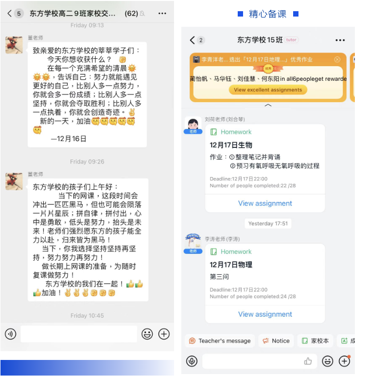 网课期间,老师们精心制作课件,确保网课质量,让学生能顺利从线下过渡到线上。直播课上,老师通过语音互动,文字互动,连麦等方式进行交流学习,时刻关注学生动态,引导学生以的状态进入课堂,高效学习,每节课的教学质量。课后,老师逐一批改学生作业,及时解答学生难题,做到今日事,今日毕。
