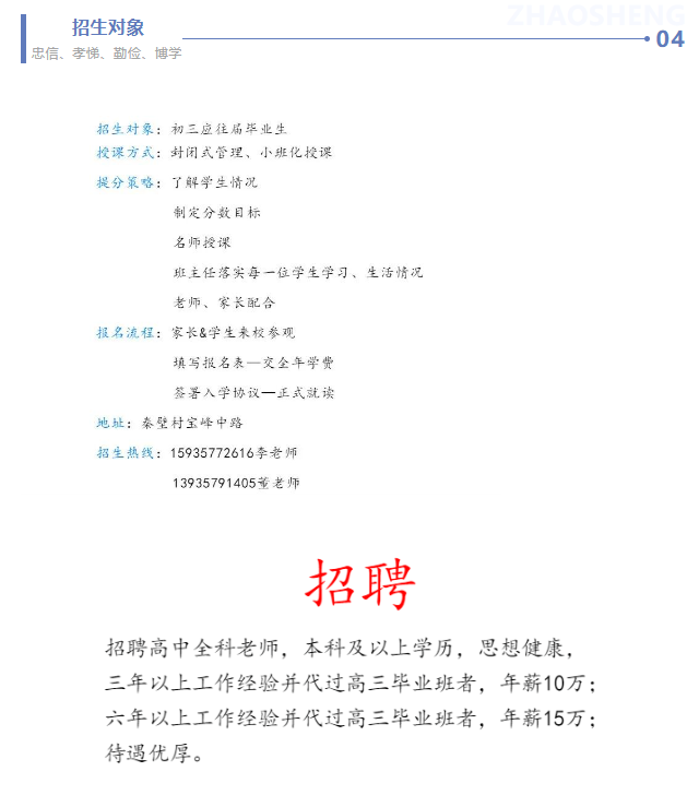 栋梁”的教育理念,以育人为根本,以爱心为纽带,通过爱的濡染,善的弘扬,美的追求,真的缔造,育人教书,达成“忠信、孝悌、勤俭、博学”训导目标,对学生实行“封闭式、人性化、规范化”的管理。