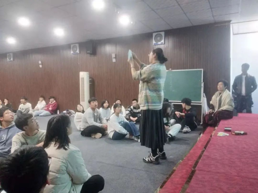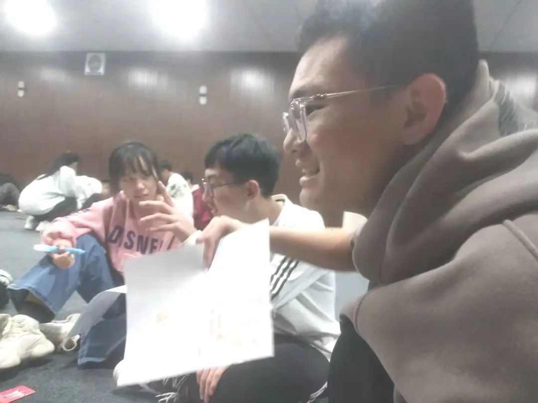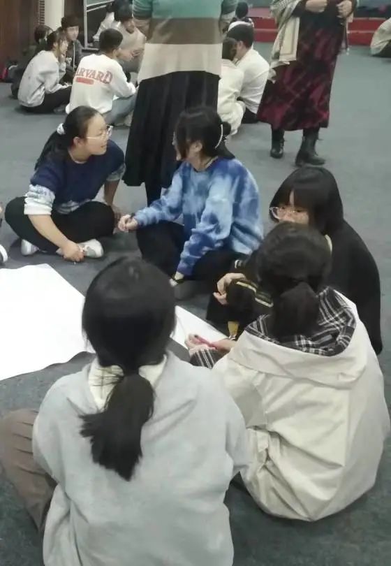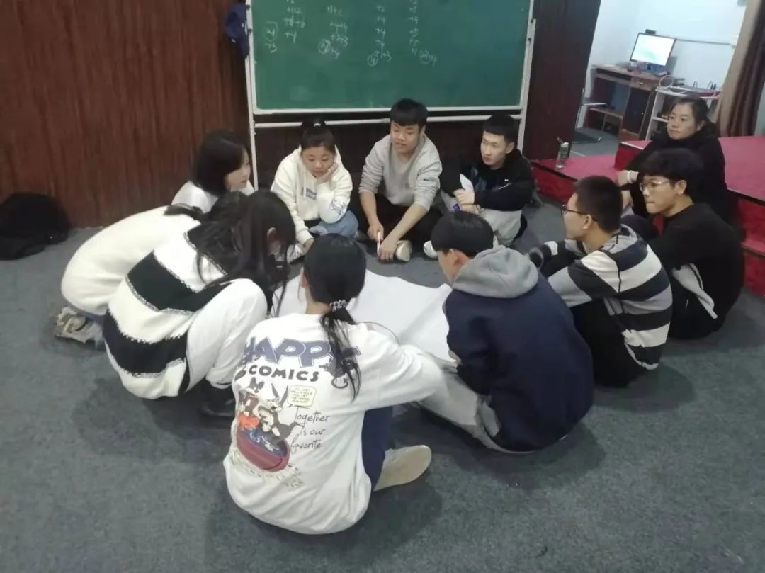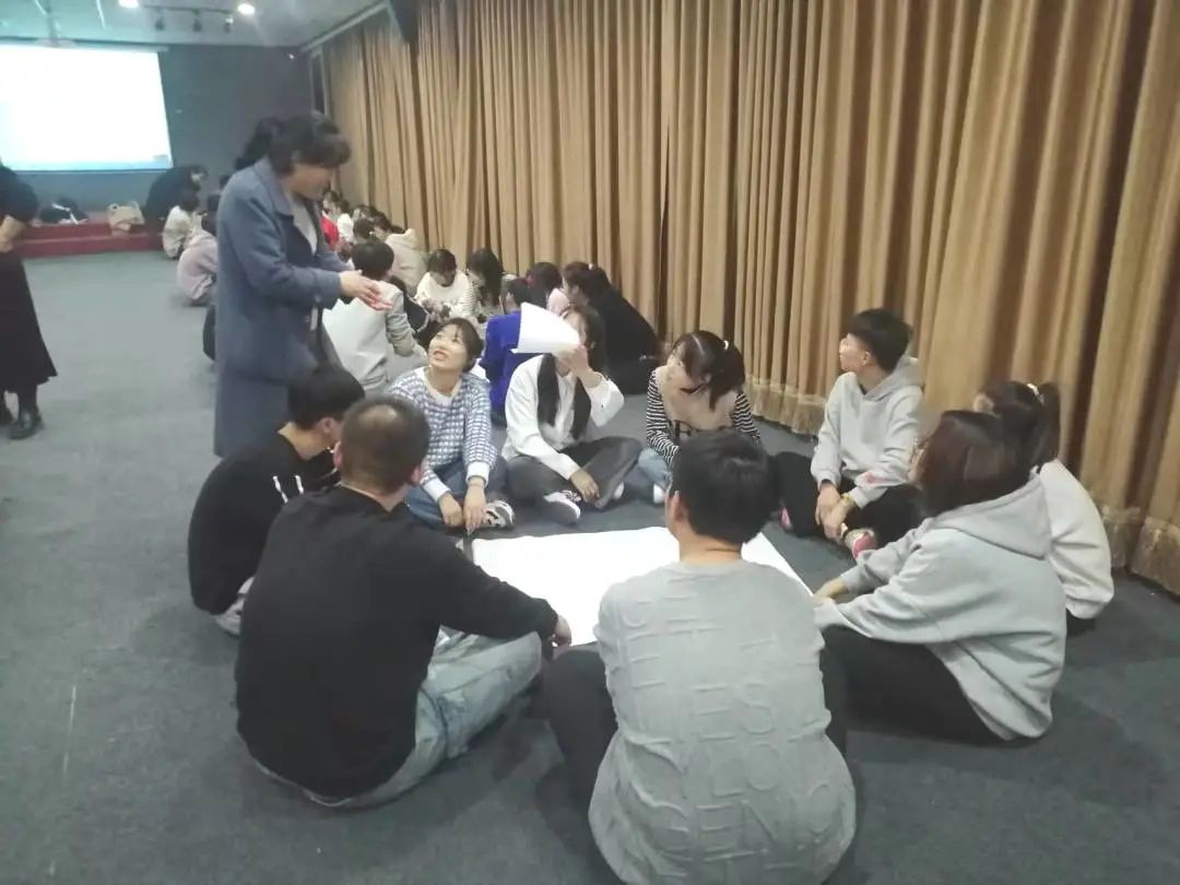 在活动的开始,主持人从“桃花朵朵开”的游戏引入,活跃现场气氛,之后根据报数游戏,让报相同数字的学生成为一组,并每组配有一名助教老师。